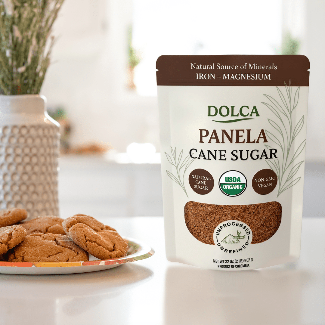 Dolca Panela is our unrefined, cane sugar—the traditional “whole cane” sweetener known as panela / piloncillo / papelónin Latin America.