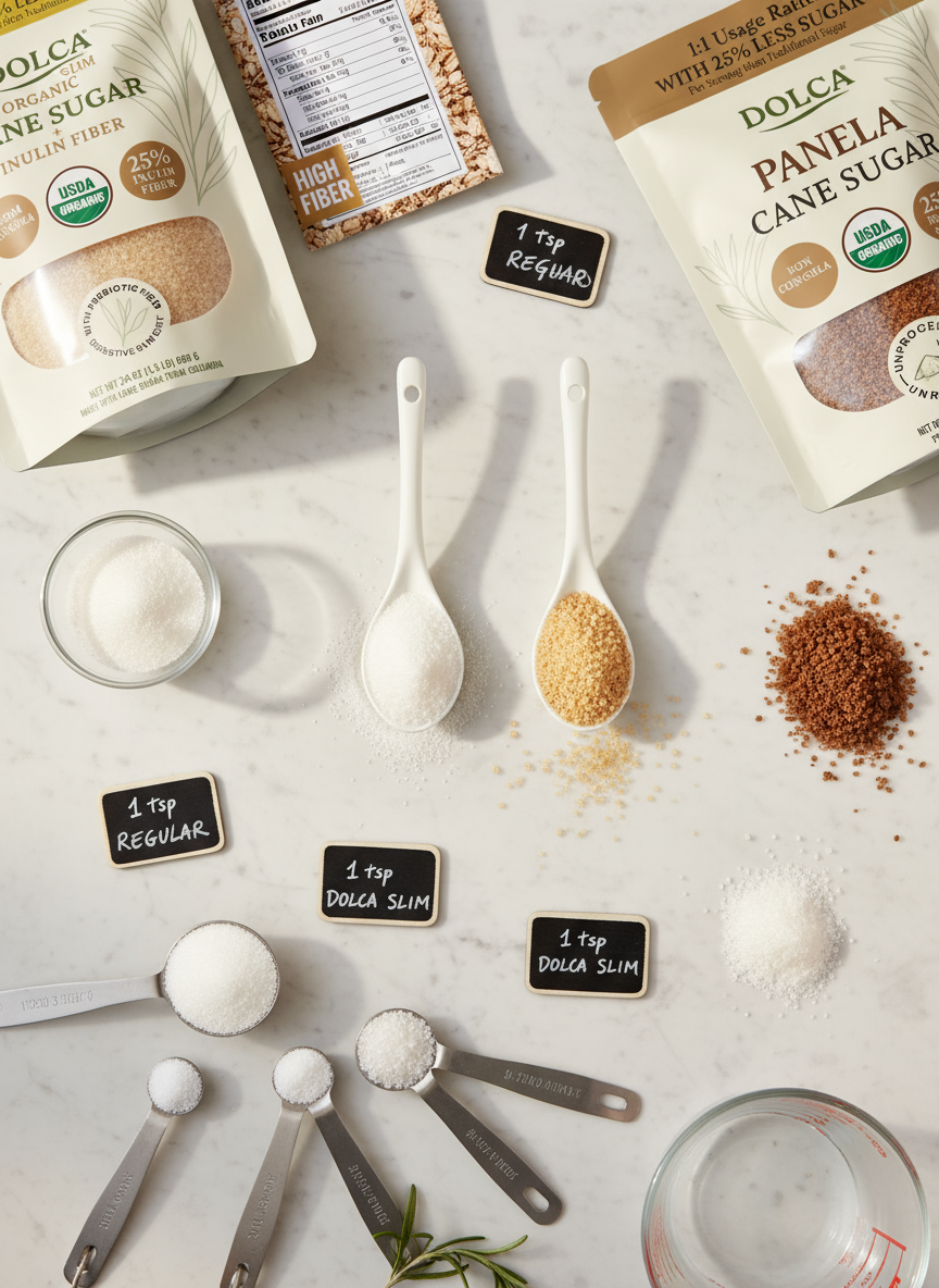 1:1 usage ratio (Dolca Slim) — Cup-for-cup like regular sugar